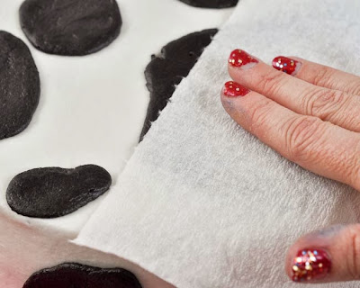 To get the spots even more smooth, I waited about 15 minutes, then used a Viva-brand paper towel to gently smooth the spots. (Lay the towel on top of the icing, and gently rub with your hand to get the icing smooth-- being careful not to press into the icing, or it will just stick to the paper towel.)