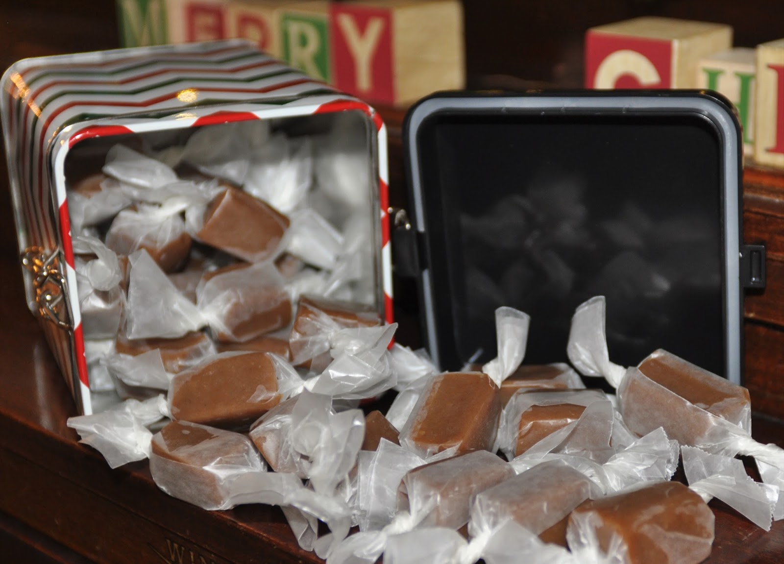 *Note: It is very important to my husband that the caramels twist to unwrap. If you want the 'satisfying twist,' you must wrap so that both sides of your wrapper go the same direction.