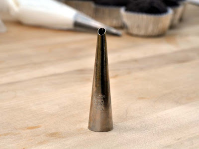 The Bismarck Tip, (Wilton's #230), is a fabulous tip. This is what you use to fill cupcakes—or Bismarck doughnuts, if you’re so inclined. And once you’ve made filled cupcakes, you just can’t go back to plain, boring cupcakes again!